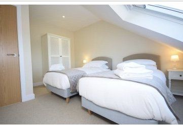 Sleeps four. The master bedroom has a king size bed, dressing table and stool, bedside tables and built in wardrobe. Bedroom two consists of two single beds, bedside tables and a double wardrobe. The bathroom has a separate shower, bath, sink, toilet and a led mirror with shaver socket. A fully equipped kitchen including dishwasher, fridge freezer, microwave, Nespresso coffee machine and pods, electric hob and oven. Separate utility room with downstairs toilet. Open plan lounge with corner sofa and swivel chair. Smart TV. Wi-fi. Log burner. Dining table and chairs look out onto the garden and large window with a stunning view of Racton Ruin.